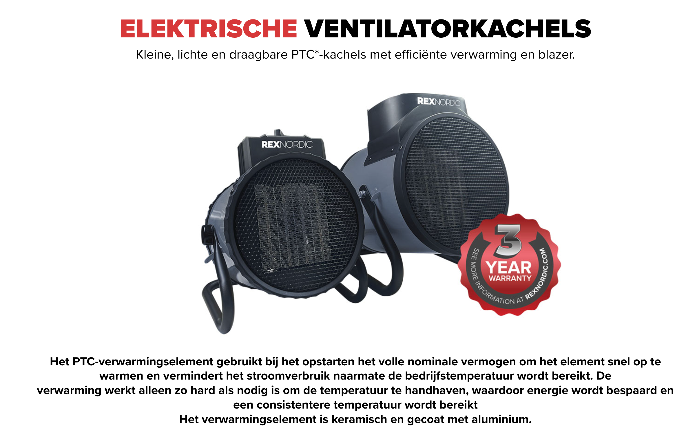 Airrex HEAT 3000 de Compacte, lichte en draagbare PTC*-kachels met efficiënte verwarming en blazer.