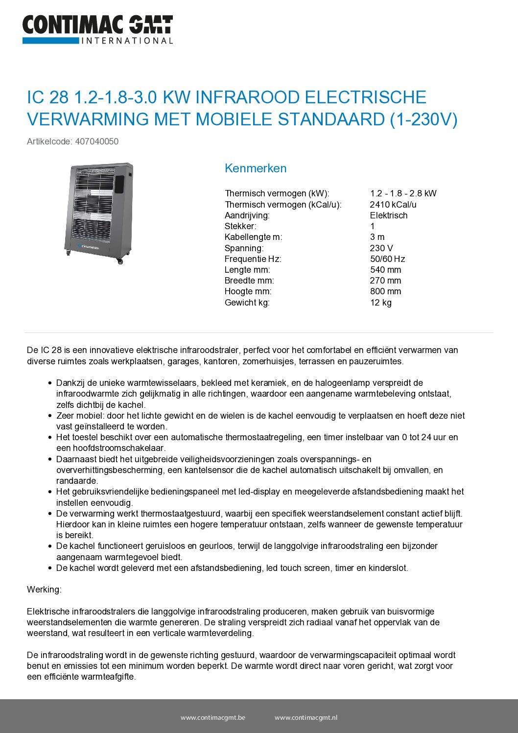 De IC 28 is een innovatieve elektrische infraroodstraler, perfect voor het comfortabel en efficiënt verwarmen van diverse ruimtes zoals werkplaatsen, garages, kantoren, zomerhuisjes, terrassen en pauzeruimtes.